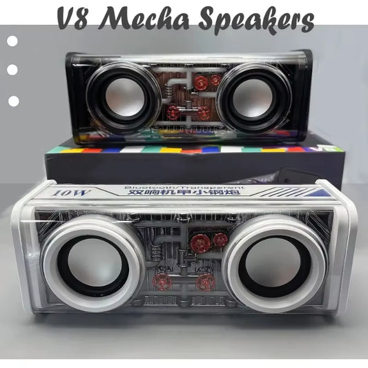 V8 Transparent Mecha Music Speakers Bluetooth Wireless 5.0 Bass Diaphragm Subwoofer TWS Stereo RGB Light Mini Party Speaker