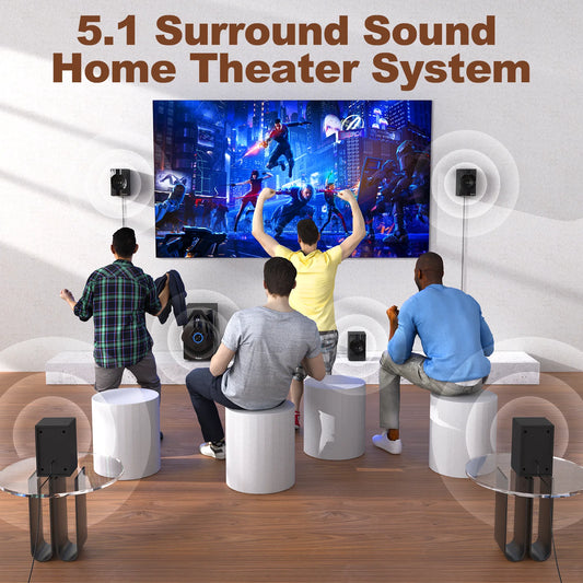 Home Theater System 800 Watts Peak Power 6.5" Subwoofer 5.1/2.1 Surround Sound Stereo Bluetooth Speakers Systems for TV