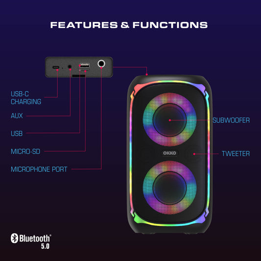 Sonic Bass V4 Portable Bluetooth Speaker – Wireless Party Speaker with Deep Bass, Karaoke Speaker with Microphone Port, LED Lights, Outdoor Portable Rechargeable Speaker