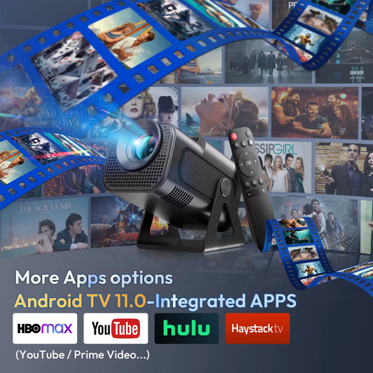 Smart Projector Native 1080P Support 4K, 390 ANSI HD Brightness, Android 11.0, Wifi 6, Auto Focus & Keystone Correction