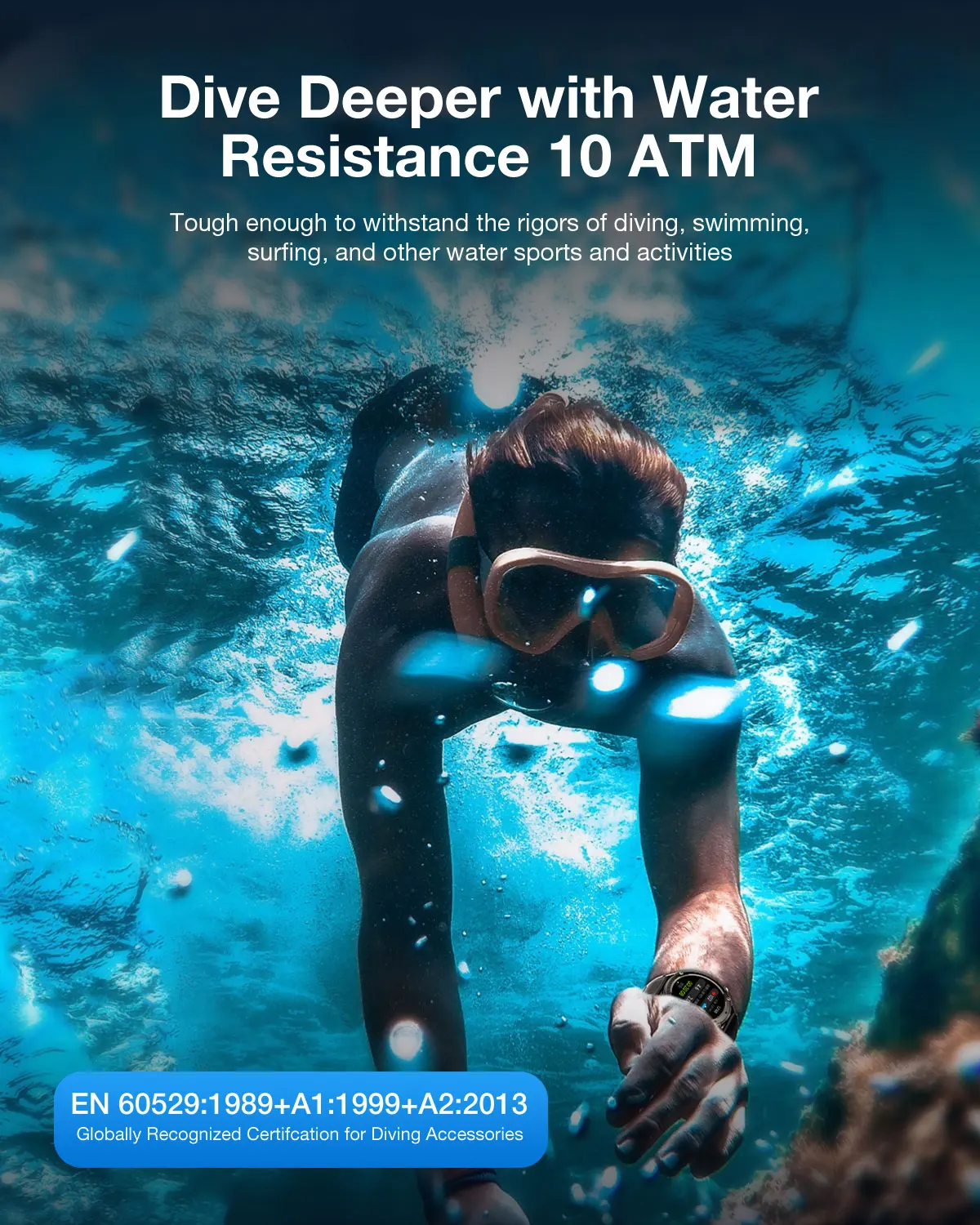 Features Barometric Altimeter & Compass, 10 ATM(Dive-proof) Water-resistance