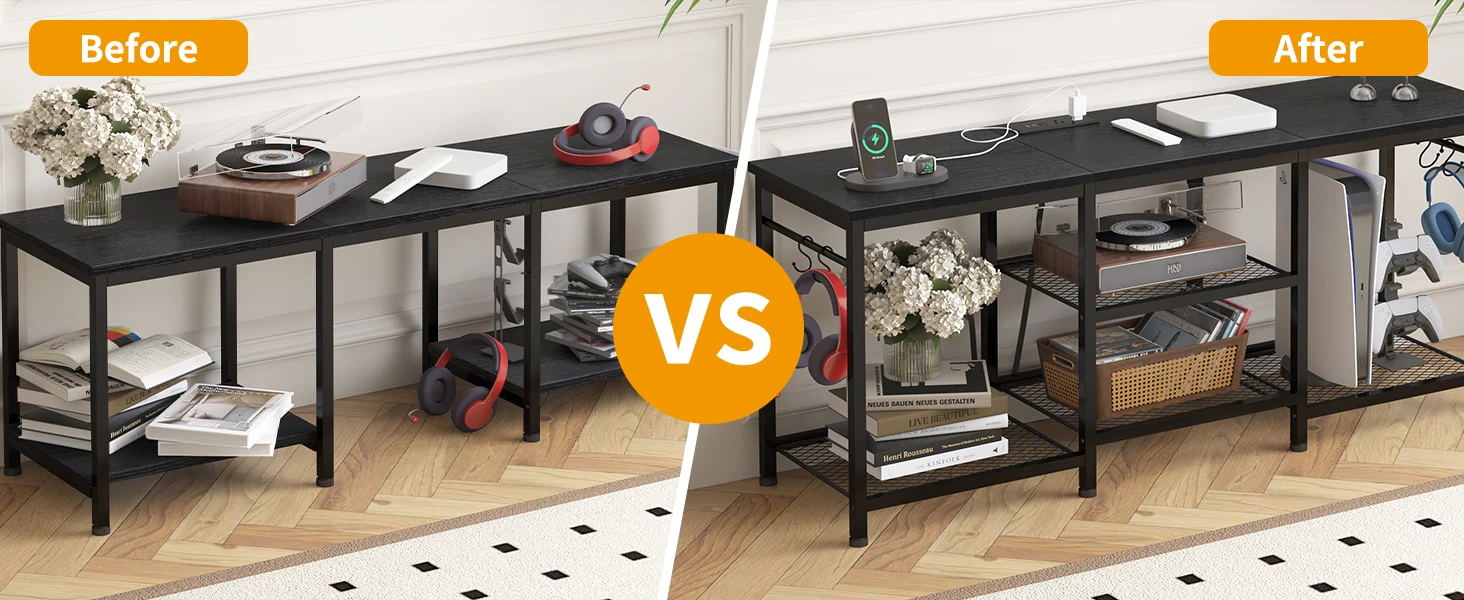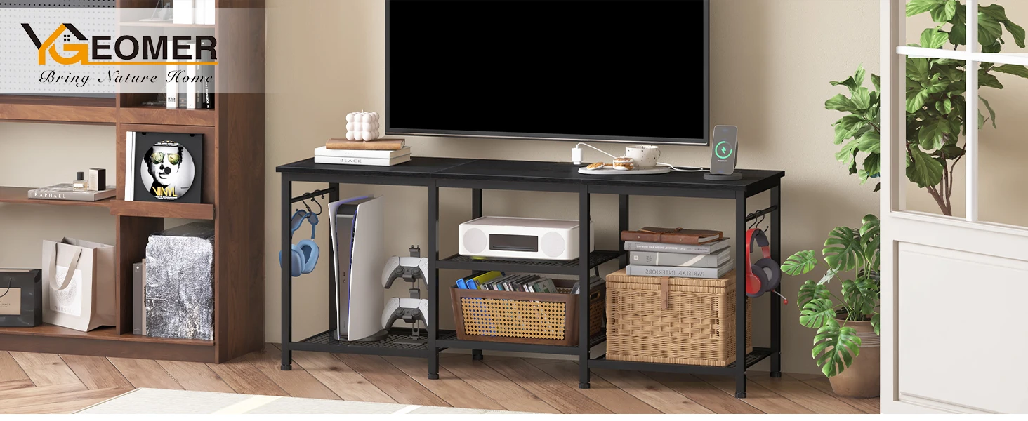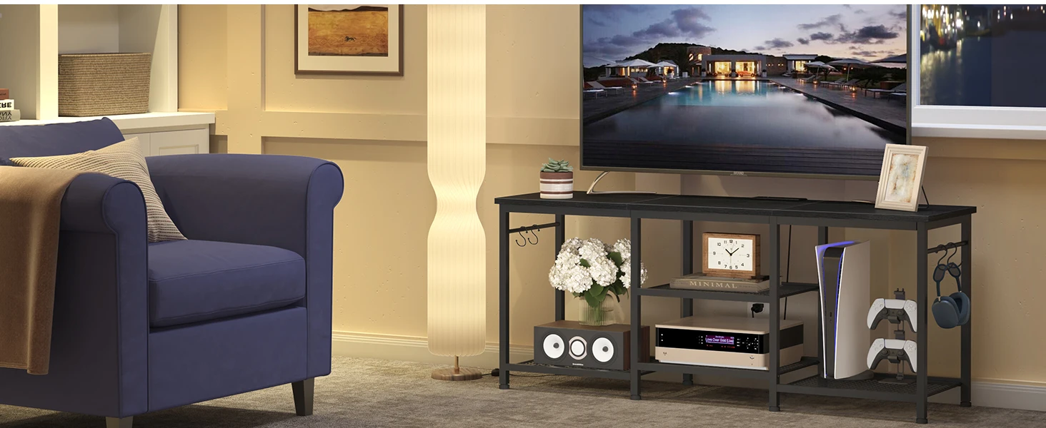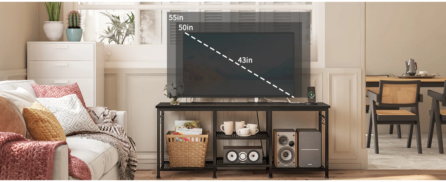 Entertainment Center for up to 55 Inch Tvs, TV Stand with Power Outlet and Open Storage Shelves, TV Media Console Table for Livi