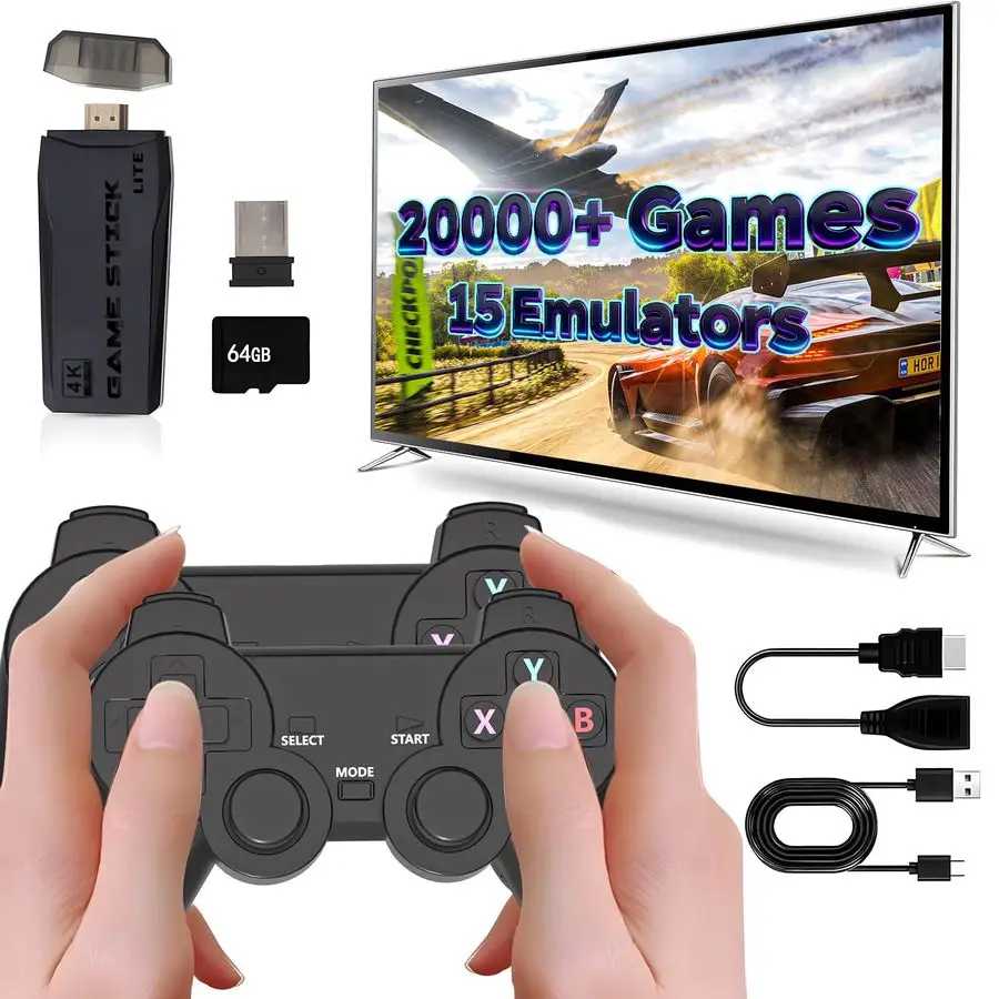 Game Console,20,000 Classic Video Games,Game Stick with Builtin15 Emulators,Plug and Play Video Games for Tv 4K,Dual 2.4G Wirele