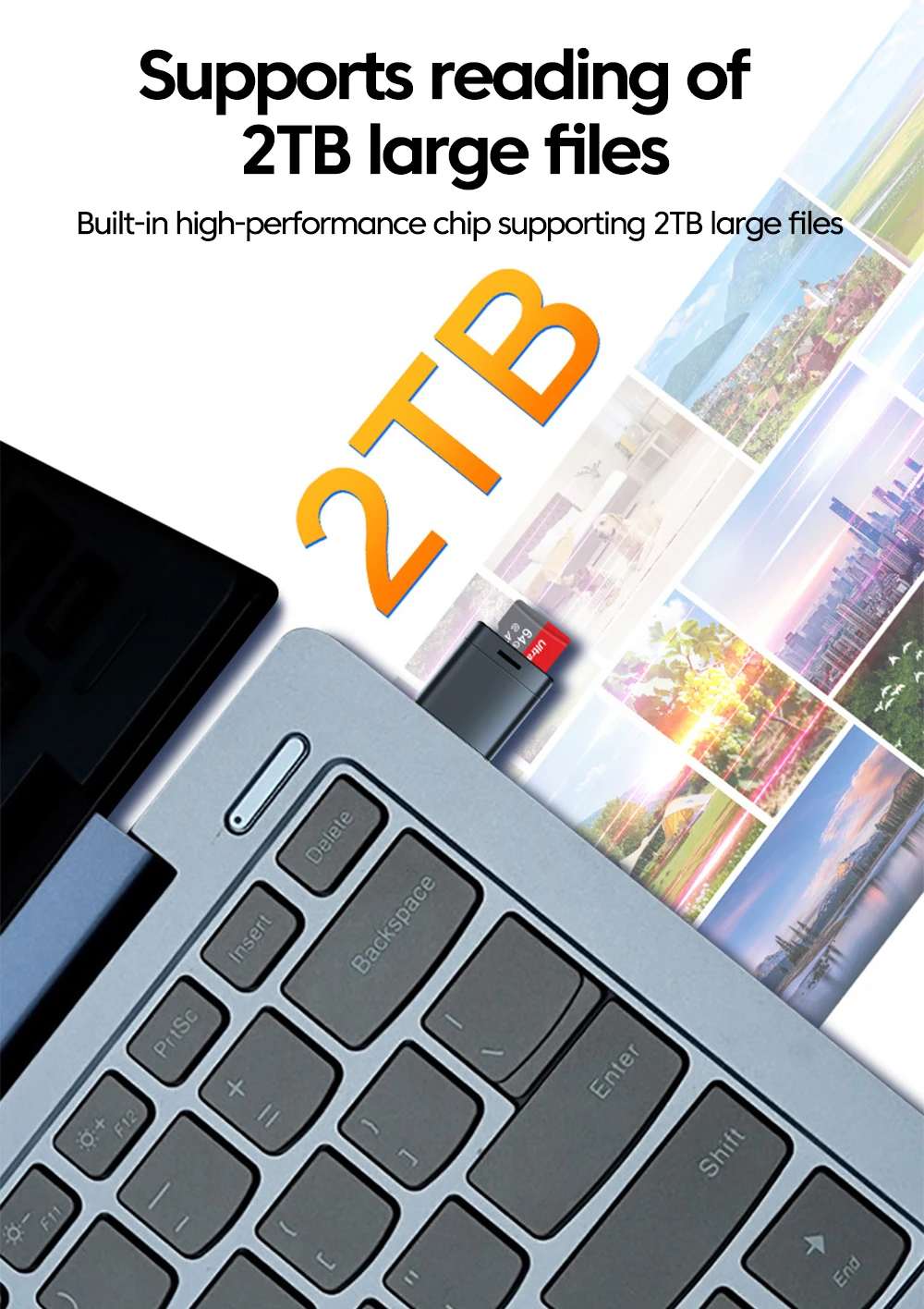 A memory card with a maximum capacity of 2TB for reading