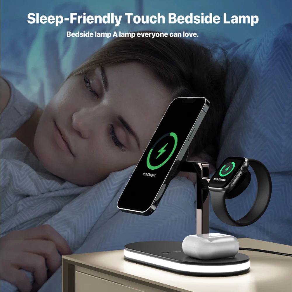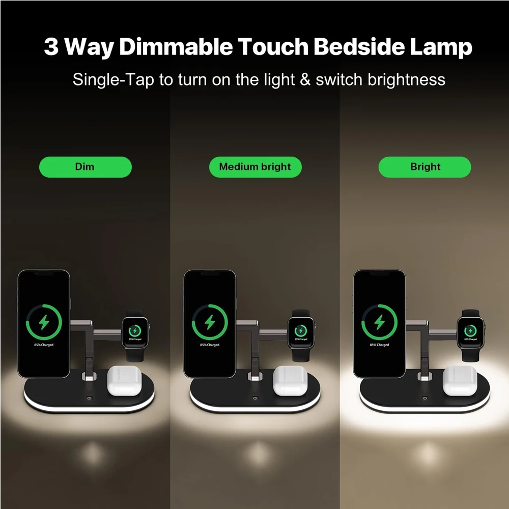 2 【3 Gears of LED Lights】- The magnetic charging station-charger stand has night light function, which supports 3 gears of brightness touch adjustment - warm light, neutral light, strong light and off, create a friendly sleeping environment for you. It is especially suitable for perfect decorations in the study, bedroom and nightstand. It supports for magsafe wireless charger iphone.