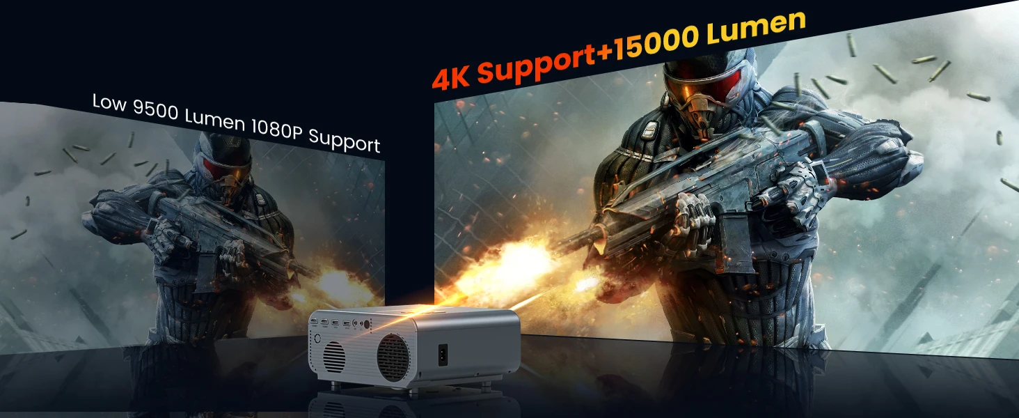 [Brighter - 6X Lens, 15000lux 500ANSI] Used 6X lens of diffuse reflective and unique IPS screen, the German RGB+PB lamp offers 3 times higher brightness than other 1080P outdoor projector. The proprietary light path structure is upgraded, provides brightness of 500 ANSI,15000lux. This bright, portable outdoor projector design allows you to build an outdoor movie theater in your backyard, garden, patio or camping. Enjoy your movie nights