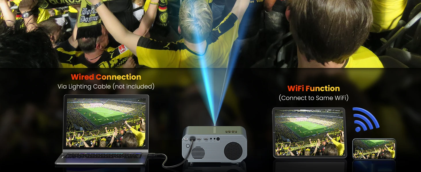 [Faster - 5G WiFi, Games 3X Speed Up]WiFi projector provides faster and smoother running speed than other WiFi projectors, ensuring a smooth video experience. Compared with the 5G network,it has 3x faster speed, larger capacity for data transfer, and lower latency. Mirroring and screen cast were both supported. Whether watching high-resolution movies, listening to high-quality musics, or playing games, speed and stability are what you can expect