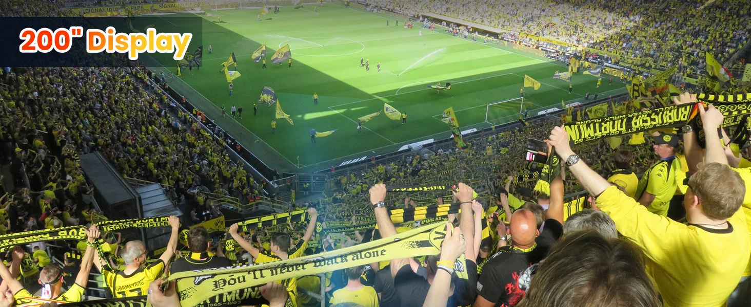 [Sharpen More - Full HD, Native 1080P] Enjoy clear and detailed images with the native 1080P resolution, and high contrast (12000:1) provided by the LED light and LCD technology. Plus, latest NTSC color technology and the image edge processing algorithmic features 80% brightness uniformity, so every detail is clearly visible even in ambient light. The outdoor projector delivers a cinematic viewing experience with Full HD video