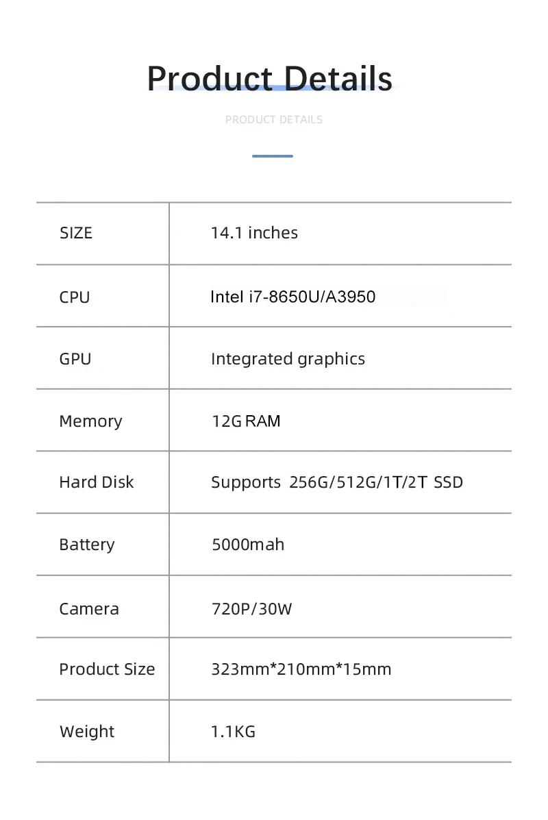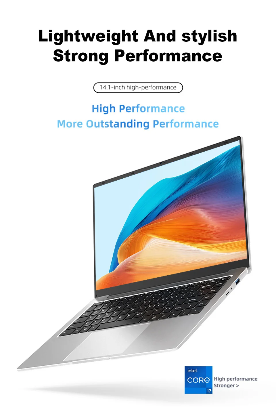 14.1"Laptop Computer PC Core I7 8650U Atom 3950 Ultra Slim Notebook 12GB RAM 1TB 2TB SSD Office Study Windows 11 1920*1080