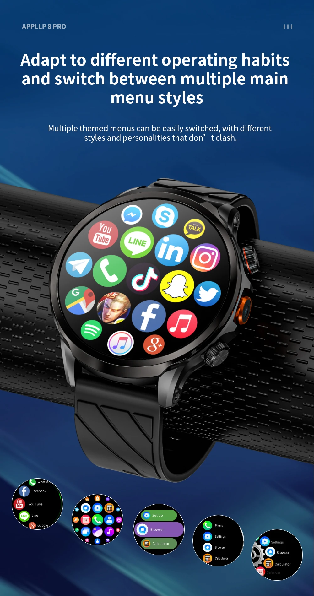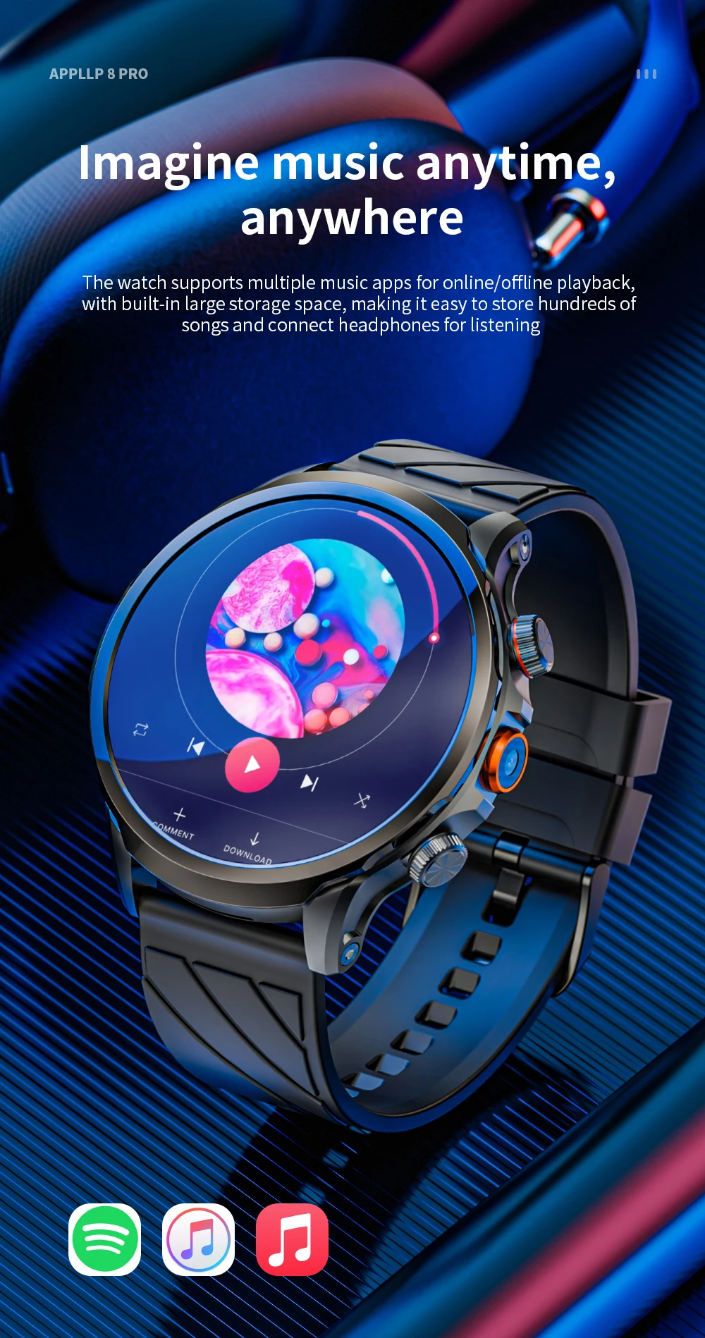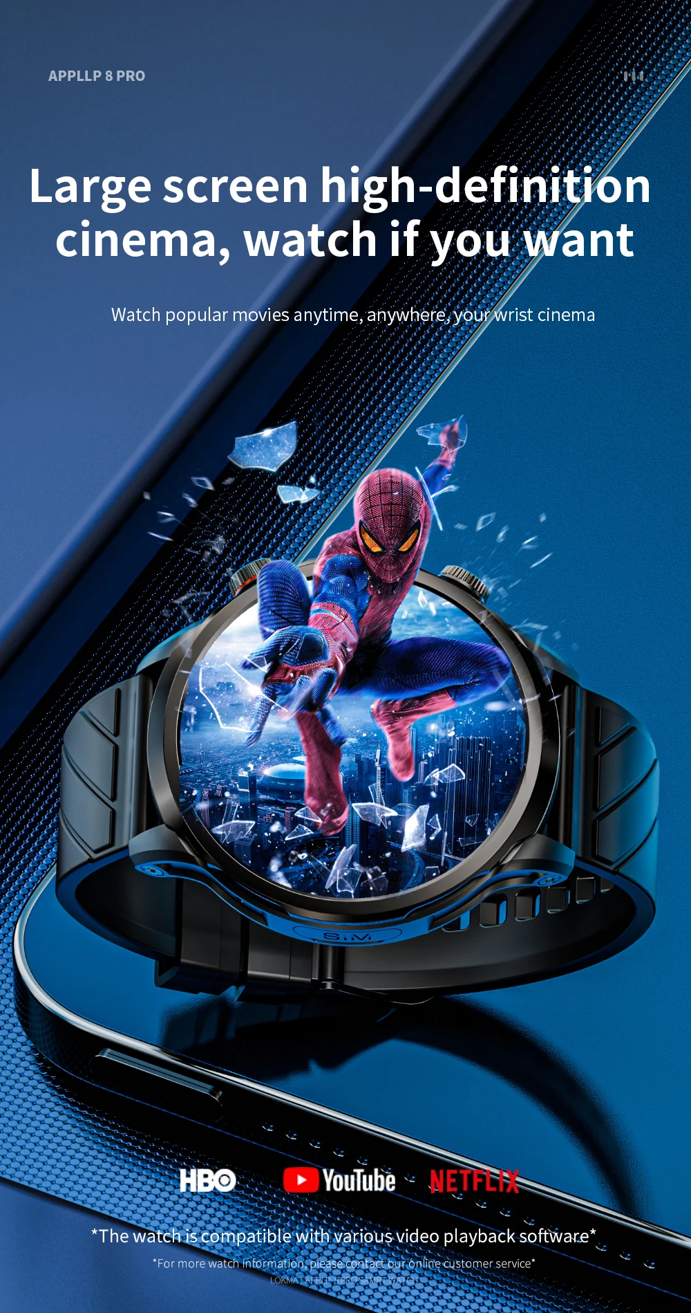 APPLLP 8 PRO Android Smart Watch Phone Big round Screen Wifi 4G Network Watch Camera Smartwatches SIM Card Watch Fitness