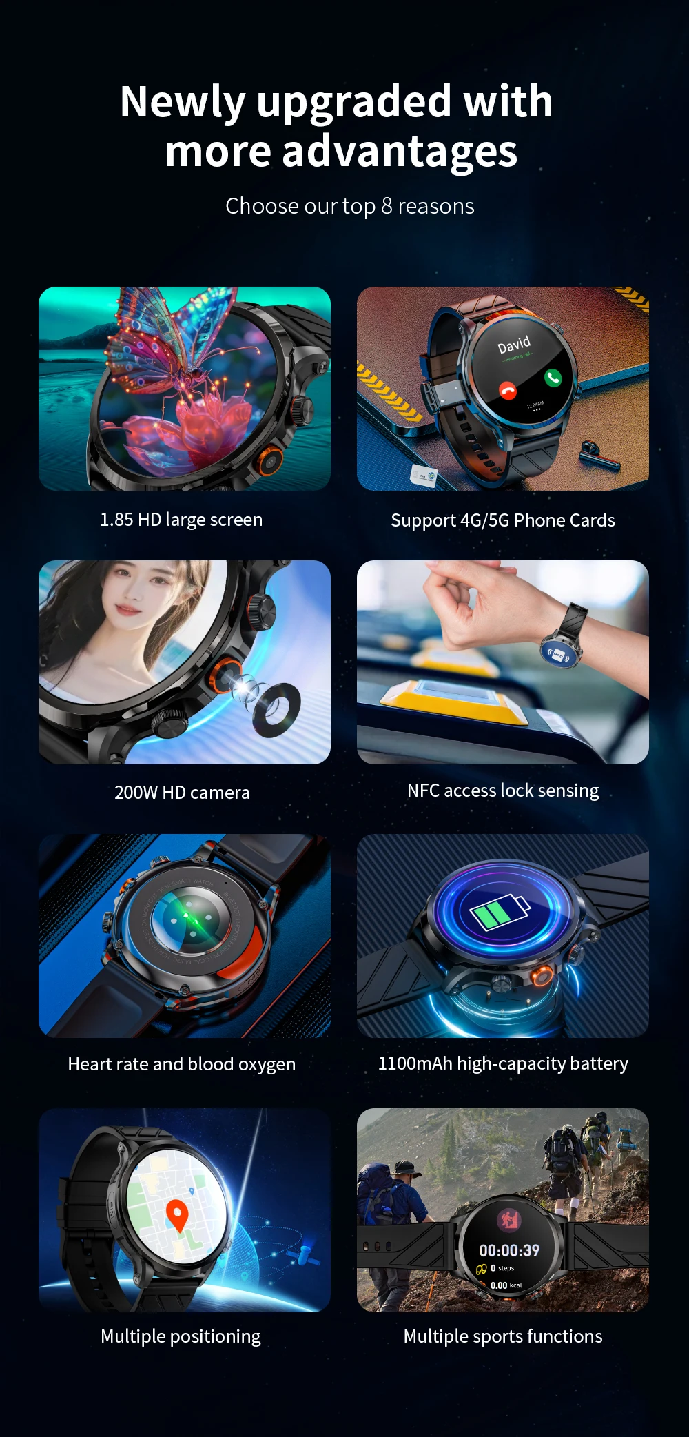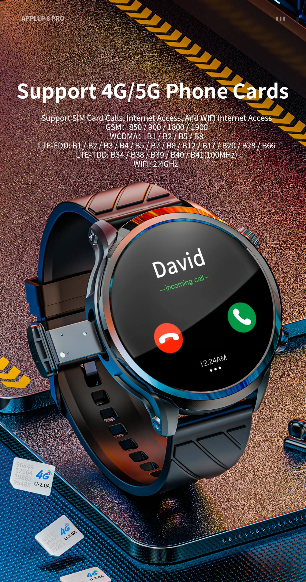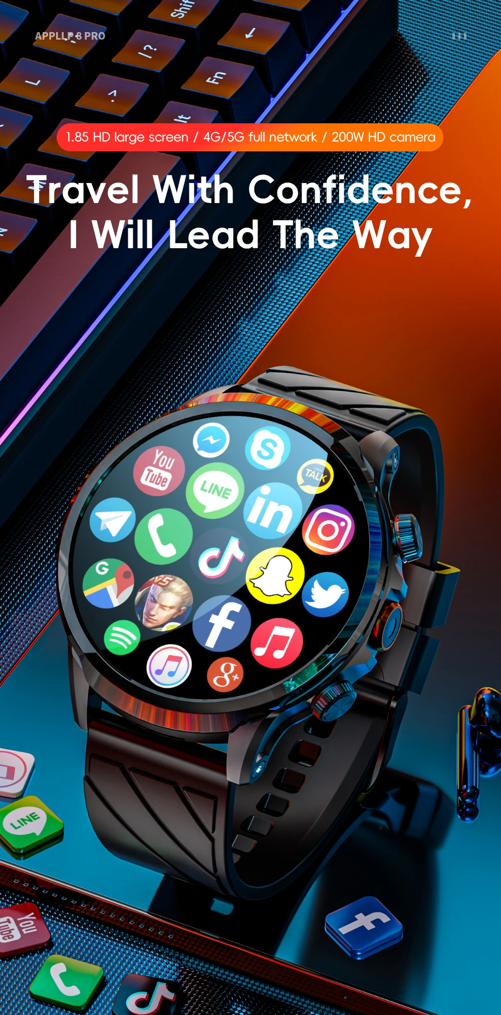 APPLLP 8 PRO Android Smart Watch Phone Big round Screen Wifi 4G Network Watch Camera Smartwatches SIM Card Watch Fitness