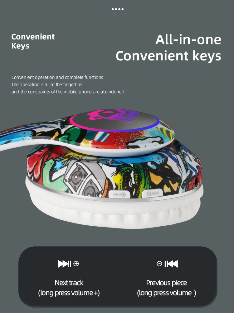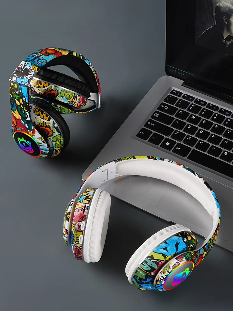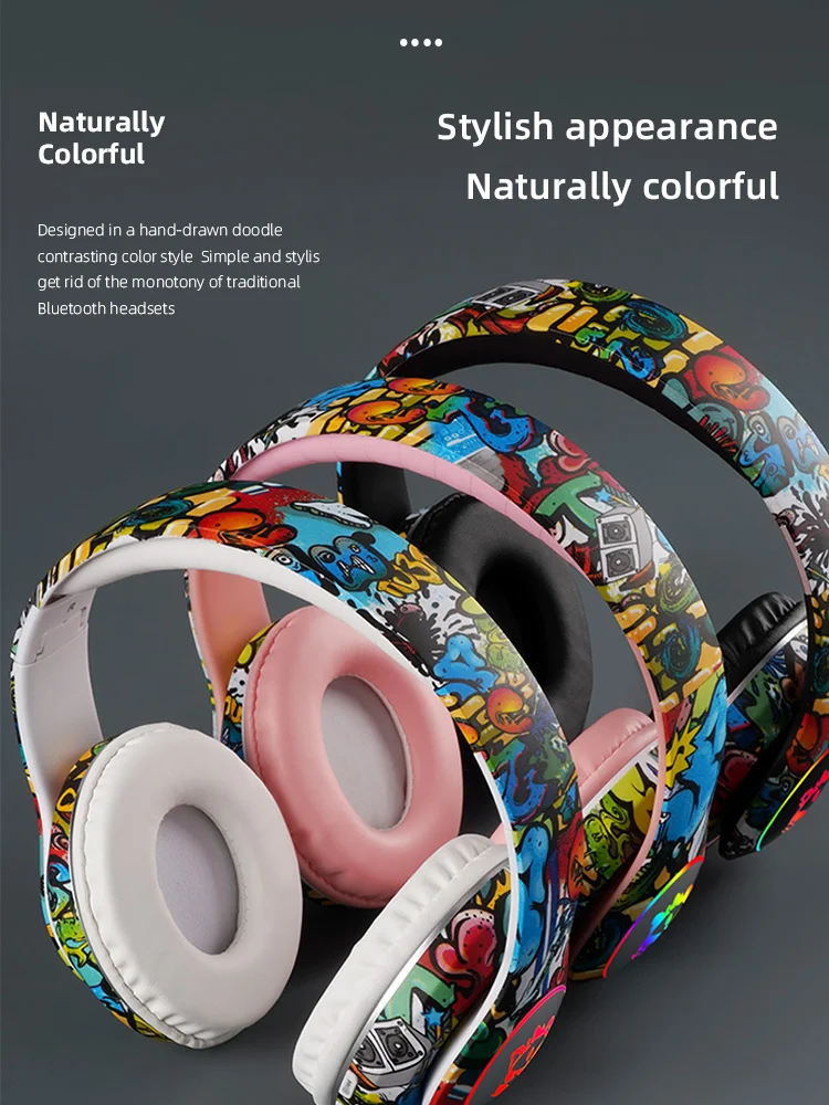 Graffiti Bluetooth Headphones Wireless LED Light Game Doodle Wireless Headsets with Mic for Kids Boy Girl Gift Support TF Card