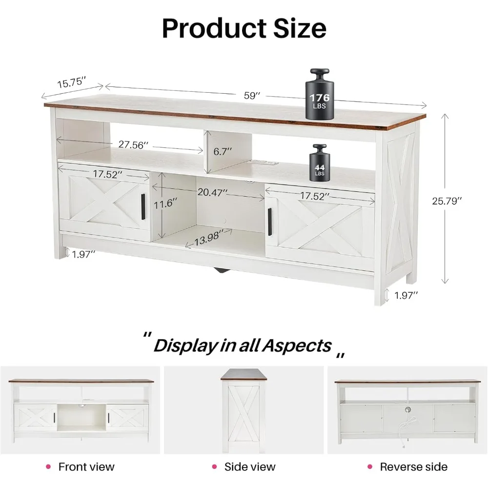 Redlife 65 Inch Tv Stand, White Farmhouse Tv Stand, Entertainment Center with Power Outlets for Tvs, Rustic Tv Stand with Storag