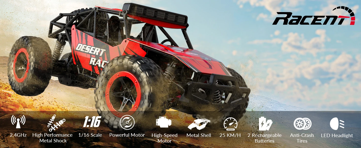 Remote Control Cars for Boys 1:16 20Kph RC Truck Off-Road Monster Truck Toy for Kids & Adults with 2 Rechargeable Battey