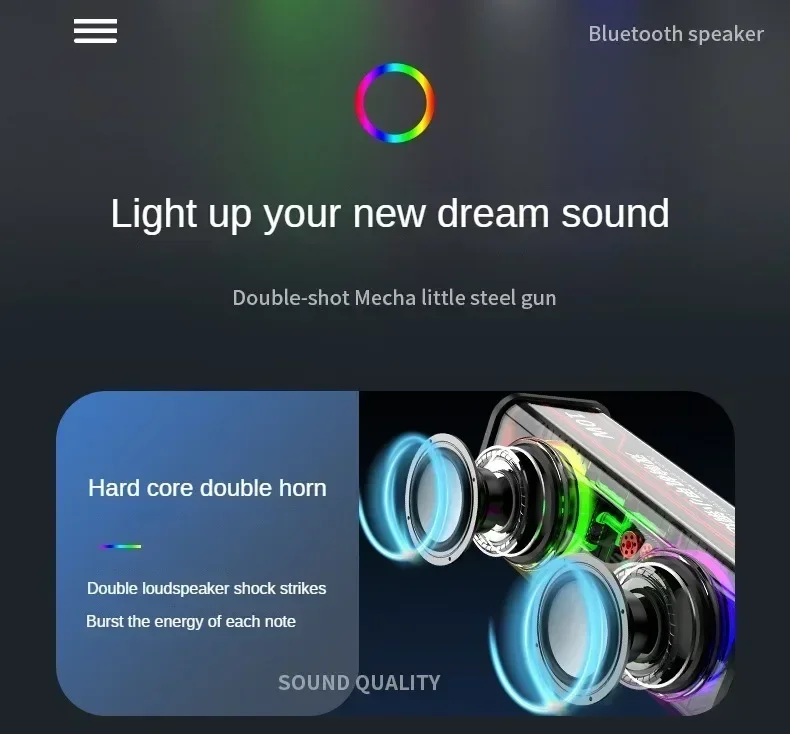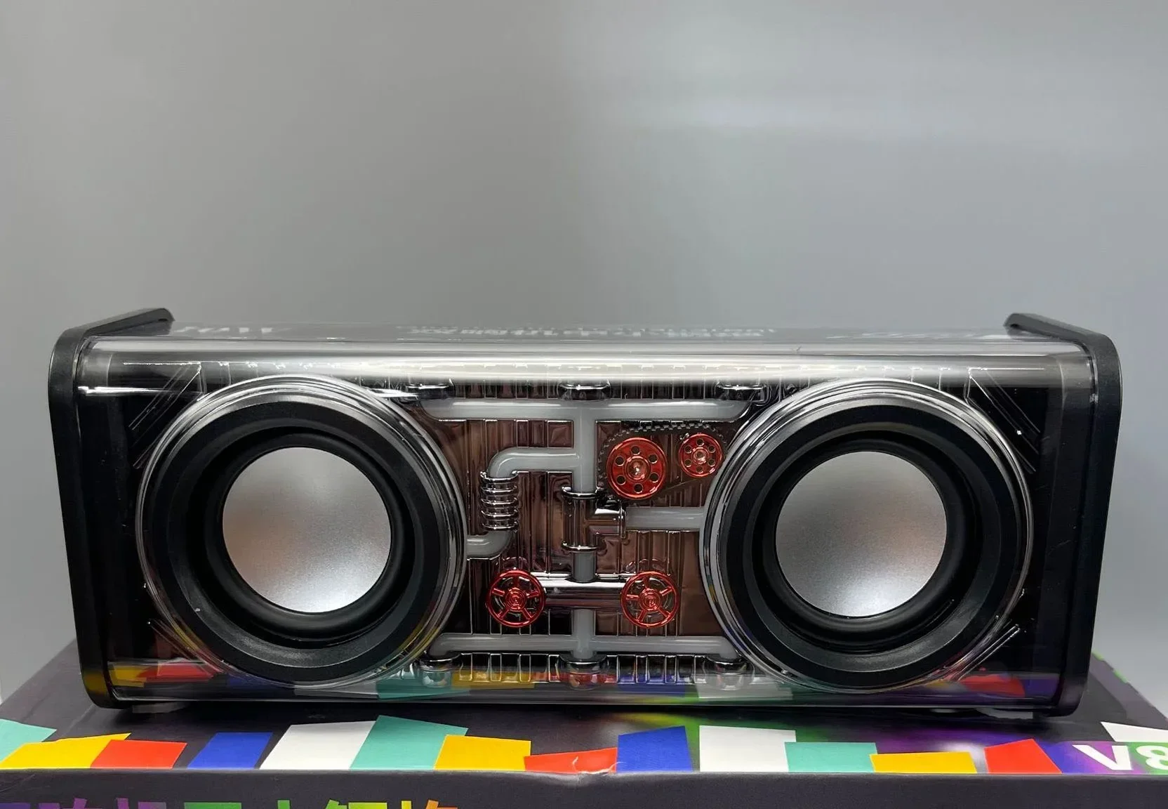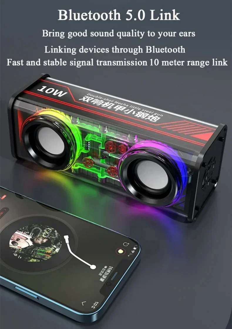 3. Unique Transparent Mecha Design: The portable speaker's unique design allows for a visually stunning experience with a multidimensional effect that enhances the overall sound quality.