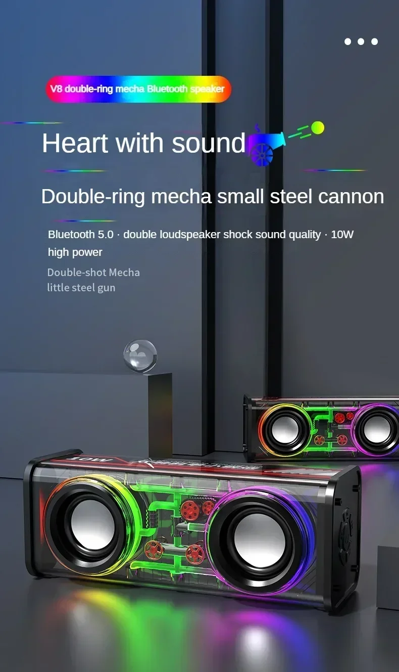 V8 transparent mecha Bluetooth speaker double sound RGB outdoor light portable Subwoofer wireless Bluetooth bass audio speaker