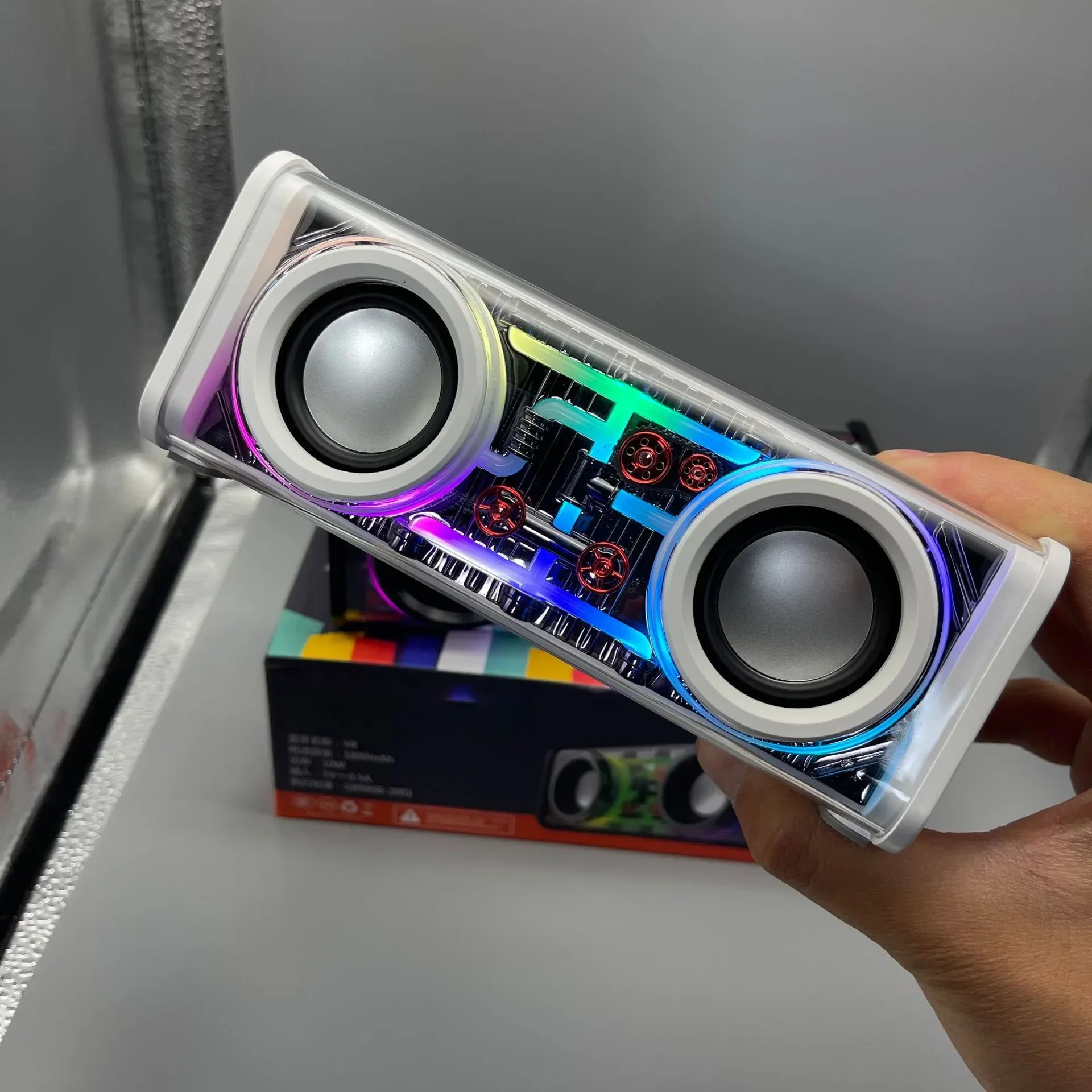 V8 Transparent Mecha Music Speakers Bluetooth Wireless 5.0 Bass Diaphragm Subwoofer TWS Stereo RGB Light Mini Party Speaker